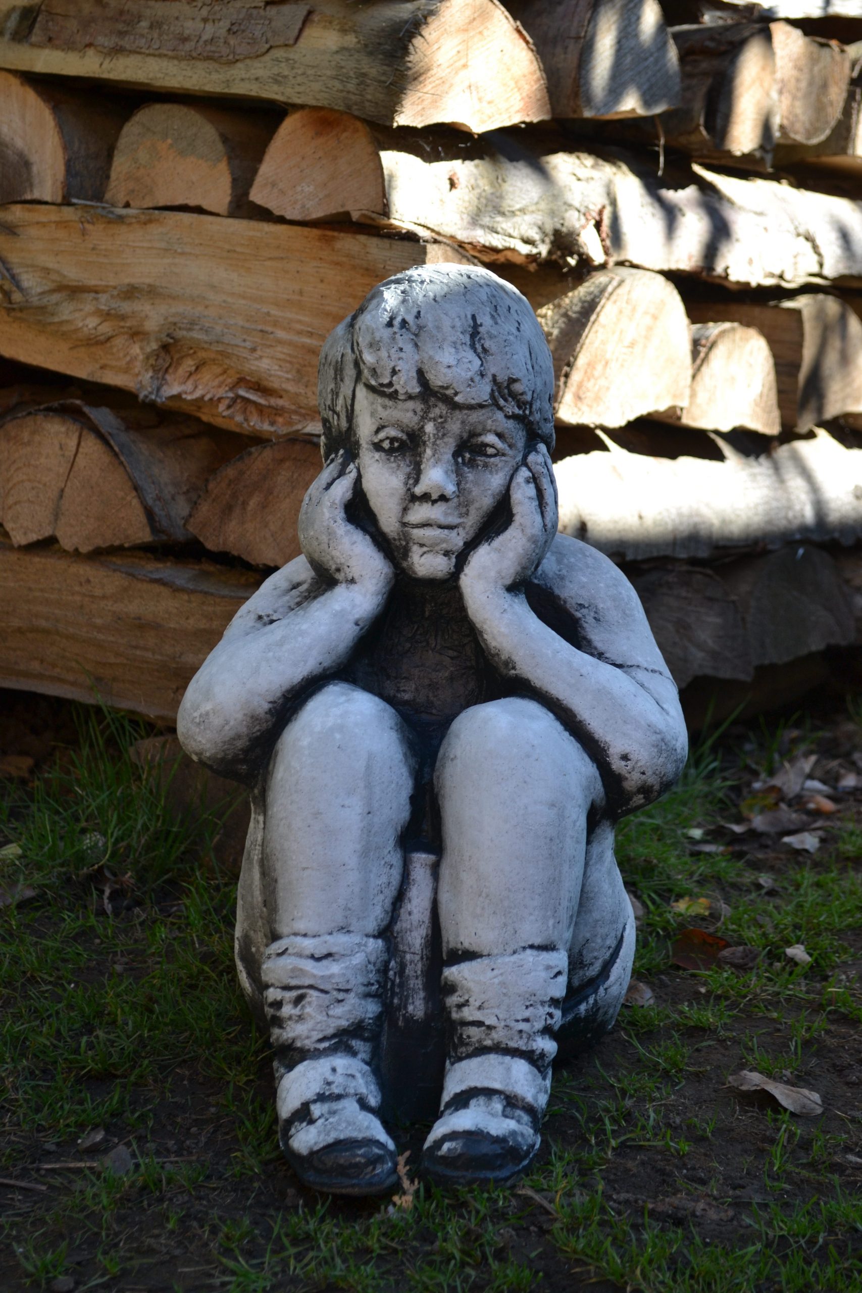 Băiat mare șezând-cod- S 01- patinat/alb