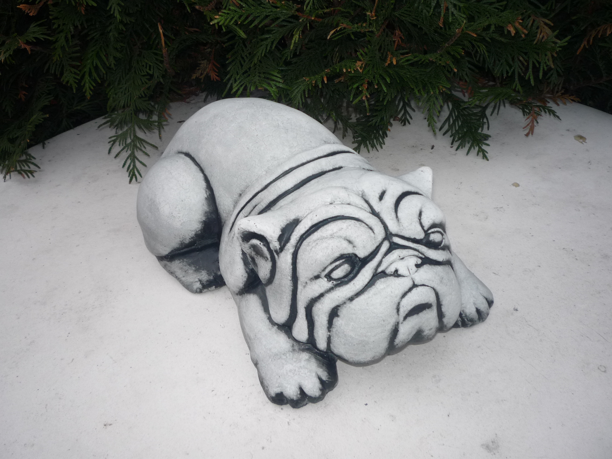 Cățel haios mare culcat/patinat-alb