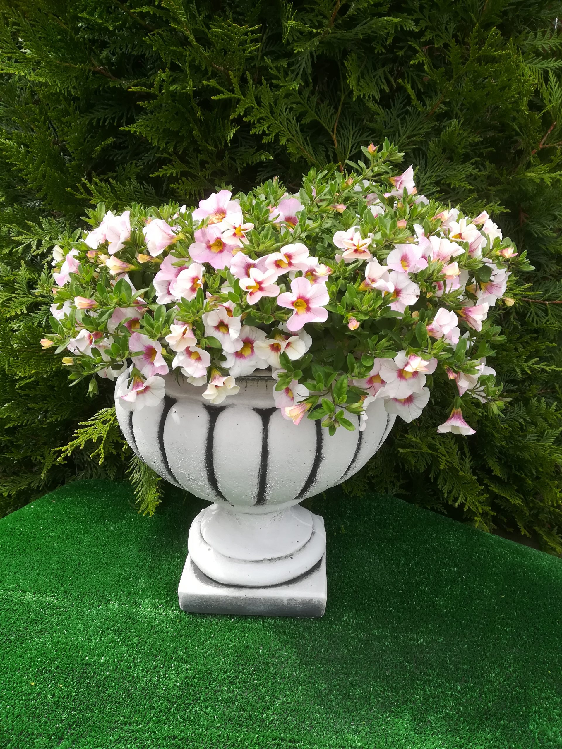 Ghiveci rotund cu picior- alb/patinat-cod-G 20